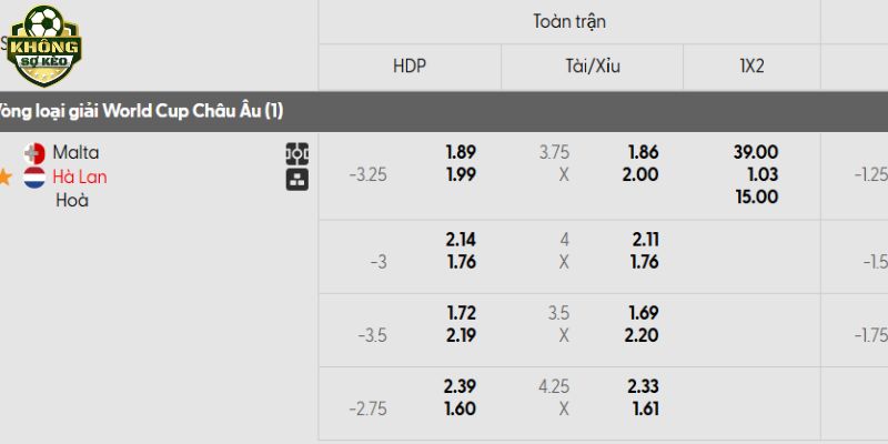 Chiến thắng 8-0 trong lần gần nhất và trung bình 5 bàn thua/trận là cơ sở vững chắc để tin vào cửa Tài. Malta là đội yếu nhất bảng, dù họ có chiến thắng trước San Marino, đối đầu với hàng công đẳng cấp thế giới như Hà Lan sẽ là thảm họa. Như đã phân tích, Hà Lan cần ghi càng nhiều bàn càng tốt để củng cố hiệu số.