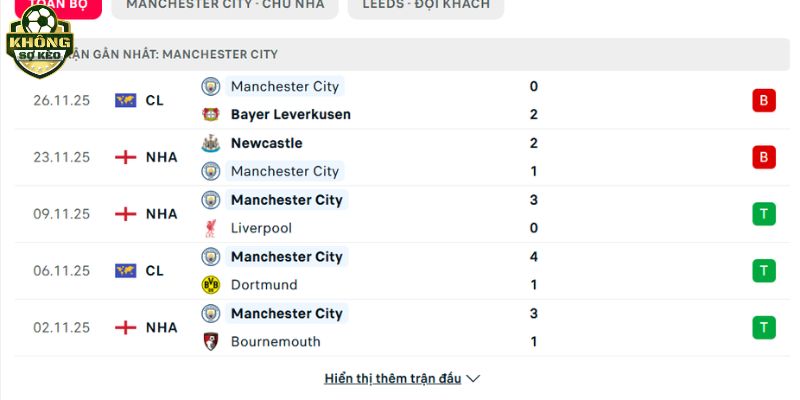 Man City vừa trải qua một tuần khó khăn với hai thất bại liên tiếp: thua 1-2 trước Newcastle United tại Premier League và thất bại 0-2 trước Bayer Leverkusen tại Champions League. Ngược lại, Leeds đang phải đối mặt với chuỗi lịch thi đấu kinh hoàng (Man City, Chelsea, Liverpool) trong bối cảnh phong độ tụt dốc thảm hại. Dưới đây là nhận định kèo trận Man City vs Leeds của Không Sợ Kèo!