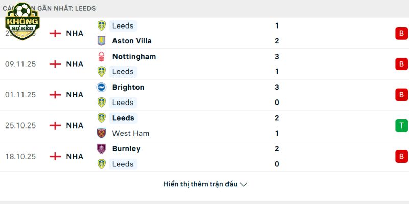 Tuy nhiên, có hai điểm nhấn cần lưu ý: thứ nhất, họ luôn ghi bàn sớm (cả 4 bàn gần nhất đều trong 15 phút đầu trận). Thứ hai, họ đã thua 3 trận liên tiếp dù là đội mở tỷ số. Điều này cho thấy Leeds có khả năng nhập cuộc tốt nhưng hệ thống phòng ngự hoàn toàn sụp đổ sau khi dẫn trước. Điều đó khiến họ mất kiểm soát trận đấu và phải trả giá đắt.