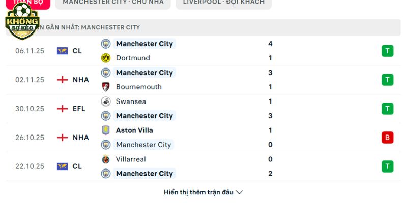 Man City đang ghi bàn liên tục với hiệu suất đáng kinh ngạc, trong khi Liverpool vẫn có vấn đề về phong độ sân khách (thua 3 trận liên tiếp). Đáng chú ý việc họ chưa bao giờ thắng Man City 2 trận sân khách liên tiếp trong lịch sử Premier League là yếu tố tâm lý lớn. Với sự trở lại của hàng thủ và quyết tâm của The Reds, họ có thể gây khó khăn. Thế nhưng khả năng Man City thắng cách biệt để ăn kèo là cao hơn.