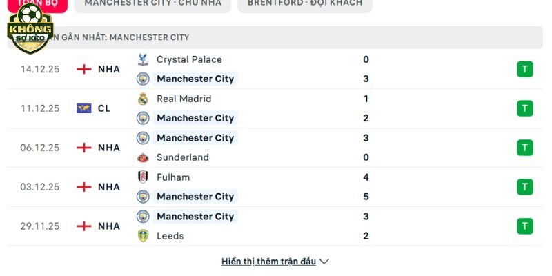 Man City đã bất bại trong 5 lần đối đầu gần nhất với Brentford, bao gồm chiến thắng 1-0 hồi tháng 10. Mặc dù tỷ số không quá cách biệt, điều này cho thấy sự vượt trội ổn định của City. Brentford có rất ít cơ sở lịch sử để tin vào chiến thắng.