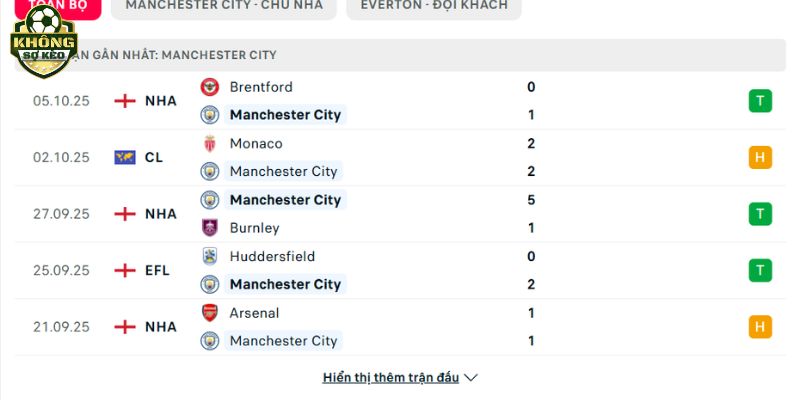 Phong độ Manchester City vs Everton
