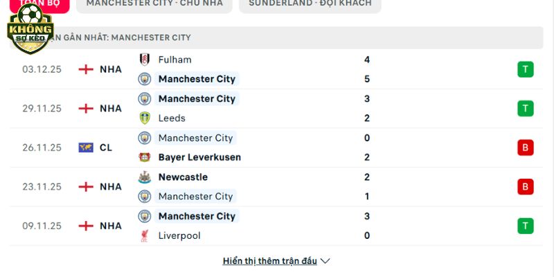 Man City có 19 bàn thắng tại sân nh, và các trận gần đây của họ đều có tỷ số cao. Sự mất tập trung của hàng thủ City sẽ tạo điều kiện cho Sunderland ghi bàn. Sunderland với niềm tin có thể thắng ở bất cứ đâu cũng sẽ không chơi phòng ngự toàn diện. Lựa chọn Tài ở mốc 3 là hợp lý.