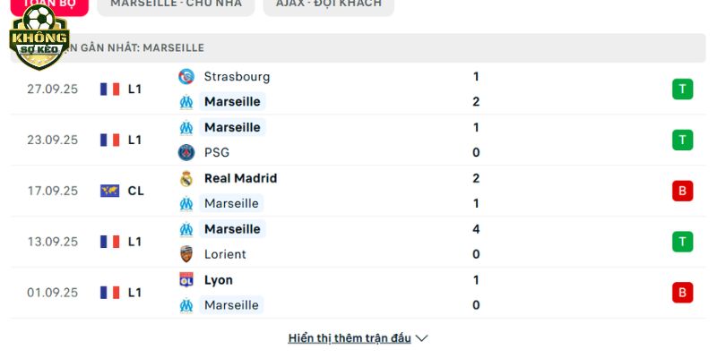 Thành tích đối đầu gần đây giữa Marseille vs Ajax cho thấy một sự đối lập thú vị. Trong 5 lần chạm trán gần nhất, Marseille bất bại trước Ajax. Trận đấu gần đây nhất của họ tại Stade Velodrome là cuộc rượt đuổi tỷ số đầy kịch tính trong khuôn khổ Europa League 2023, kết thúc với chiến thắng 4-3 nghiêng về OM.