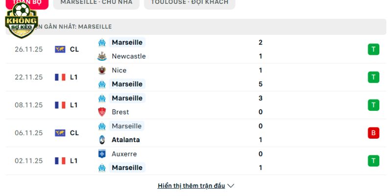 Thành tích đối đầu giữa Marseille vs Toulouse tại Stade Vélodrome gần như là lịch sử áp đảo. Kể từ năm 2012, Toulouse chưa bao giờ giành chiến thắng tại đây. Trong 6 lần gần nhất, họ đã để thua đến 5 trận. Điều này tạo ra rào cản tâm lý cực kỳ lớn đối với đội khách.