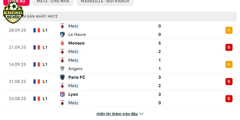 Metz sau 6 vòng đấu vẫn đang miệt mài đi tìm chiến thắng đầu tiên. Họ là đội bóng với hàng công cùn mòn và chỉ số xGA (bàn thua kỳ vọng) cao nhất giải đấu, báo hiệu nhiều rủi ro. Ngược lại, Marseille đang bay cao với chuỗi 3 trận thắng liên tiếp trên mọi đấu trường. Hãy cùng Không Sợ Kèo đi sâu vào phân tích chuyên môn của trận đấu Metz vs Marseille.