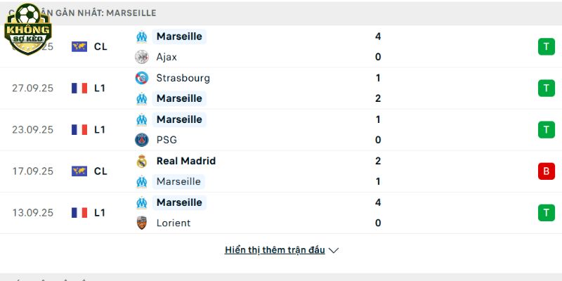 Marseille sẽ thể hiện đẳng cấp vượt trội và đà phục hồi mạnh mẽ để giành chiến thắng, phá vỡ phong độ sân khách đáng lo ngại của họ.