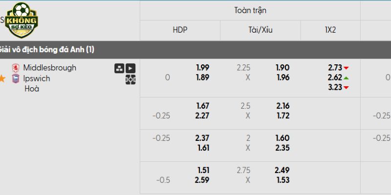 Tỷ lệ kèo Middlesbrough vs Ipswich Town