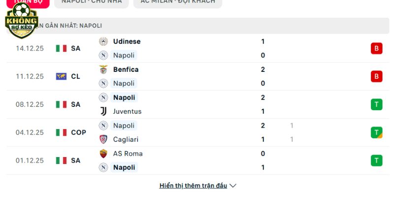 Phong độ Napoli vs AC Milan