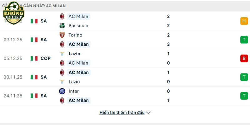 Thành tích đối đầu Napoli vs AC Milan
