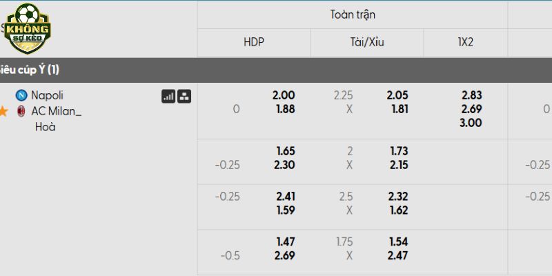 Tỷ lệ kèo Napoli vs AC Milan