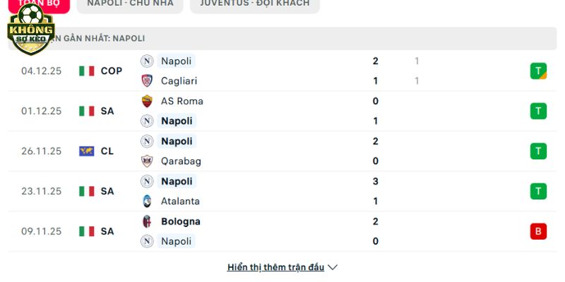 Napoli vs Juventus là cuộc đối đầu kinh điển giữa hai thế lực bóng đá Ý, nhưng bối cảnh lịch sử gần đây đang nghiêng hẳn về Napoli. Họ đã thắng cả 6 lần đối đầu gần nhất với Juventus tại sân nhà Naples. Chuỗi thắng ấn tượng này cho thấy sự áp đảo về mặt tinh thần và chiến thuật của Napoli khi thi đấu tại Maradona. Juventus đã mất đi sự thống trị đối đầu truyền thống của mình trước đối thủ phía Nam, với việc thua 7 trong 11 trận đấu tại giải vô địch quốc gia kể từ năm 2020.