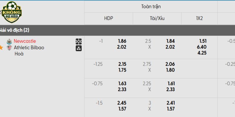 Tỷ lệ kèo Newcastle vs Athletic Bilbao