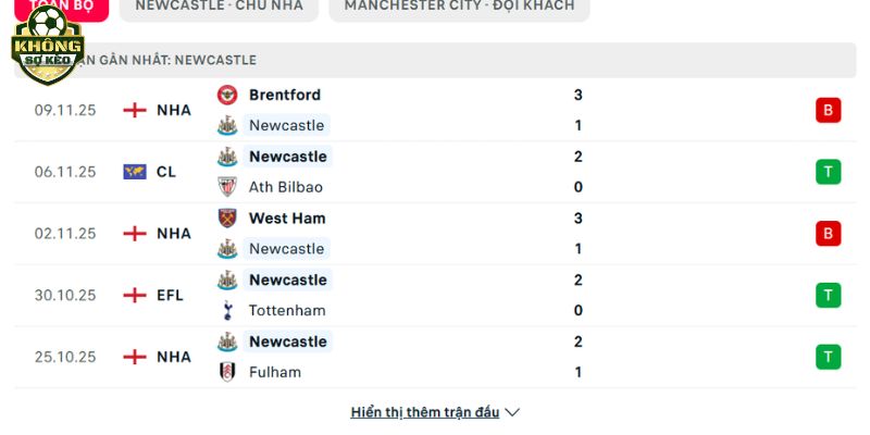 Phong độ Newcastle vs Man City