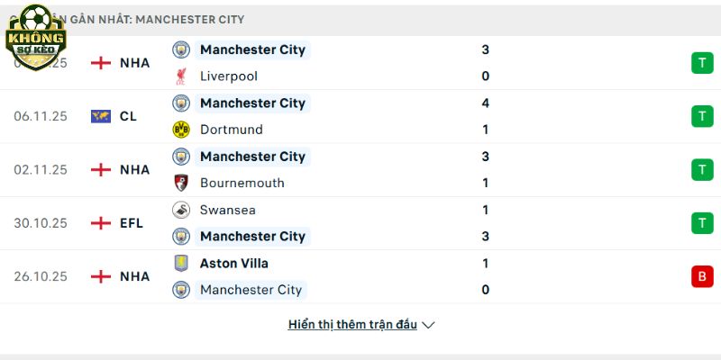 Phong độ Manchester City
