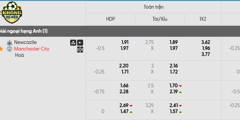 Tỷ lệ kèo Newcastle vs Man City