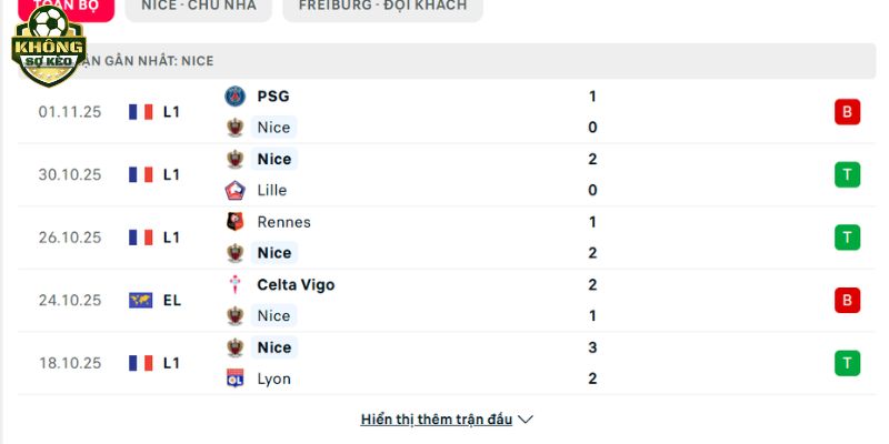 Freiburg không chỉ có phong độ tổng thể tốt hơn mà còn có kỷ lục phòng ngự hoàn hảo khi đối đầu với các đội Pháp. Điều này tạo ra một rào cản tâm lý cực kỳ lớn cho Nice. Mặc dù Nice đang khát khao chiến thắng để cứu vãn chiến dịch nhưng phong độ bất bại của Freiburg khiến việc chọn đội khách trở nên an toàn hơn.