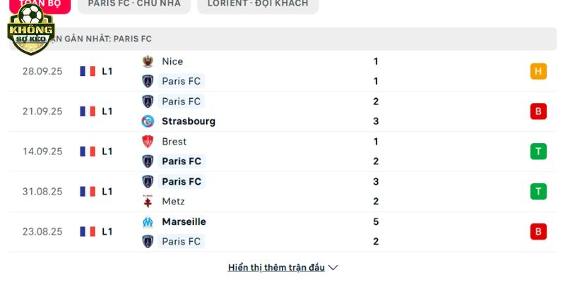 Phong độ Paris FC vs Lorient