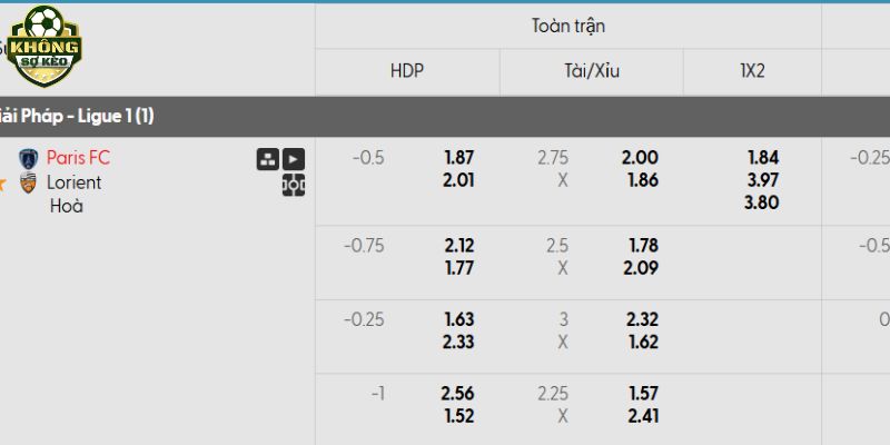 Tỷ lệ kèo Paris FC vs Lorient