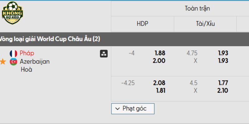 Tỷ lệ kèo Pháp vs Azerbaijan