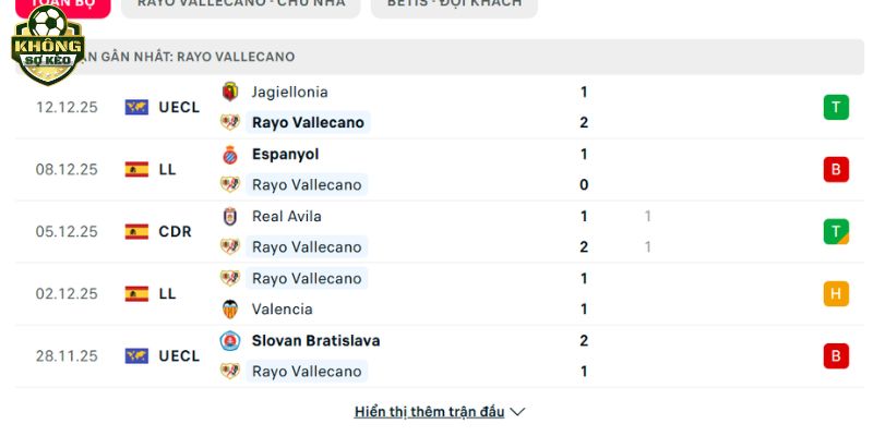 Mặt khác, phong độ La Liga của họ đang báo động. Chuỗi 5 trận không thắng cho thấy vấn đề lớn nhất của Rayo nằm ở khả năng chuyển hóa cơ hội thành bàn thắng và sự thiếu sắc bén trong khu vực 16m50. Sự bế tắc này khiến họ không thể giành được 3 điểm tối đa mặc dù đã thi đấu kiên cường trước các đối thủ lớn như Real Madrid. Rayo sẽ cần phải dựa vào kinh nghiệm và sự kỷ luật của hàng tiền vệ để tìm lại cảm giác chiến thắng.