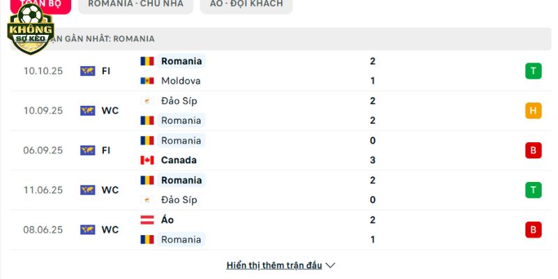 Phong độ Romania vs Áo