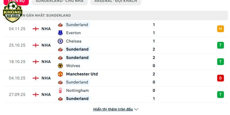 Chỉ có Crystal Palace, Brighton & Hove Albion, Bournemouth và chính Arsenal là những đội vẫn chưa thua trên sân nhà trong mùa giải Premier League 2025-26. Điều này cho thấy Stadium of Light là điểm đến không hề dễ dàng. Đây cũng là nơi diễn ra chiến thắng gần nhất của Sunderland trước Arsenal.