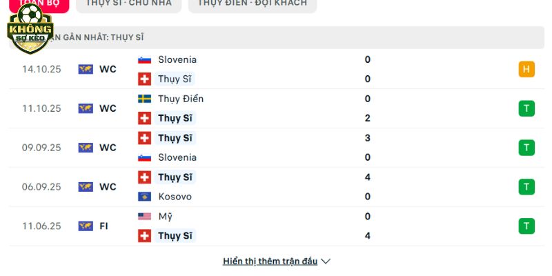 Thành tích đối đầu Thụy Sĩ vs Thụy Điển