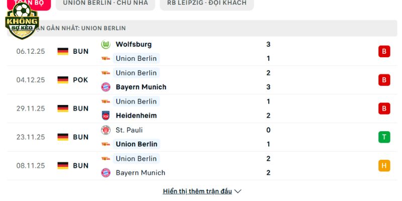 Thành tích đối đầu gần đây là yếu tố ủng hộ RB Leipzig. Union Berlin đang có chuỗi 4 trận không thắng trước đối thủ này, với chiến thắng gần nhất của họ diễn ra vào tháng 2 năm 2023. Leipzig thường xuyên tìm ra cách để vượt qua Union, dù các trận đấu thường diễn ra chặt chẽ và căng thẳng.