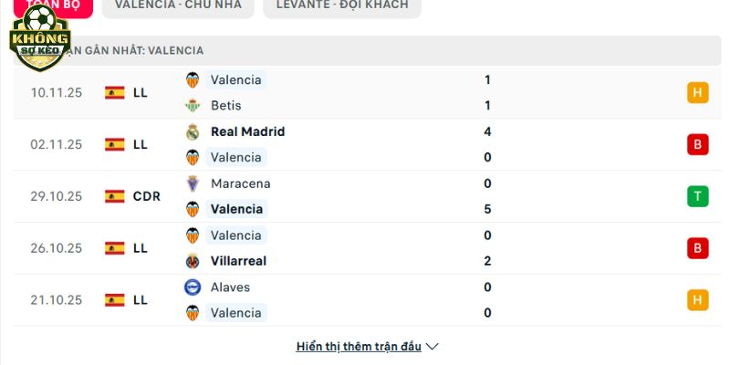 Trận đấu thuộc vòng 13 La Liga giữa Valencia vs Levante diễn ra trong bối cảnh cực kỳ căng thẳng. Cả hai đội bóng cùng thành phố này đều đang mắc kẹt ở nhóm nguy hiểm, với Valencia đứng thứ 17 (10 điểm) và Levante đứng thứ 19 (9 điểm). Khoảng cách sít sao này biến cuộc đối đầu trực tiếp thành trận cầu "6 điểm" có ý nghĩa sống còn trong cuộc đua trụ hạng. Hãy phân tích cùng Không Sợ Kèo!