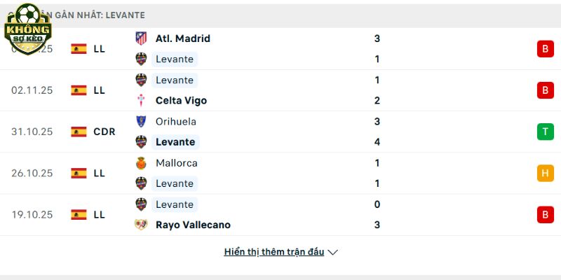 Levante đã ghi được 16 bàn thắng sau 12 trận và để thủng lưới 23 bàn. Lối chơi của họ cởi mở nên thường dẫn đến nhiều bàn thắng. Với việc Levante ghi bàn tốt trên sân khách và Valencia dễ bị thủng lưới khi cố gắng tấn công để tìm kiếm chiến thắng, kịch bản hai đội cùng ghi bàn là rất cao. Khả năng trận đấu vượt qua mốc 2.5 là khá lớn do hàng phòng ngự lỏng lẻo của cả Valencia vs Levante.